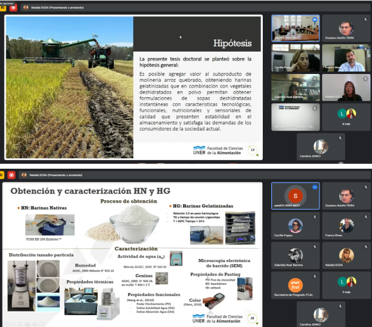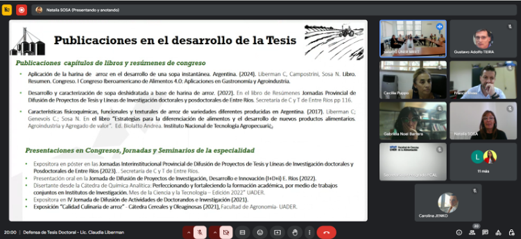 La tesis estuvo dirigida por la Dra. Natalia Sosa, en el marco del Doctorado de Ingeniería de la Universidad Nacional de Entre Ríos con mención en Ciencia y Tecnología de Alimentos, siendo los jurados de la misma la Dra. María Cecilia Puppo, el Dr. Franco Paolo Rivas, Dr. Gabriela Noel Barrera. Además, la presentación estuvo acompañada por distintos integrantes de la comunidad educativa.