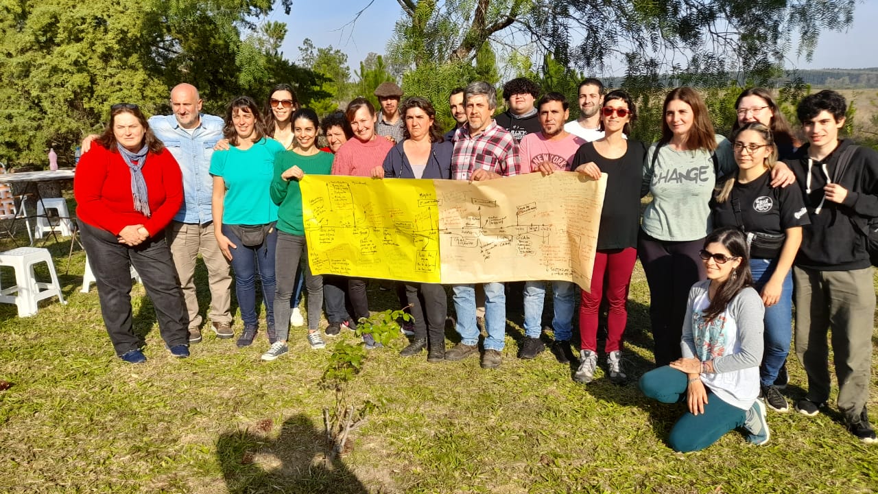 Tras compartir el almuerzo el grupo trabajó en la confección de una línea de tiempo, una dinámica que permite conocer la trayectoria de la familia, el agroecosistema y también el territorio. El objetivo es reflexionar sobre los avances, problemáticas, desafíos y fortalezas durante las transiciones a la agroecología. Es parte de la primera etapa de una metodología de investigación denominada LUME, que se implementa con el fin de generar conocimiento en torno a las estrategias de las familias agricultoras durante los procesos de cambio.